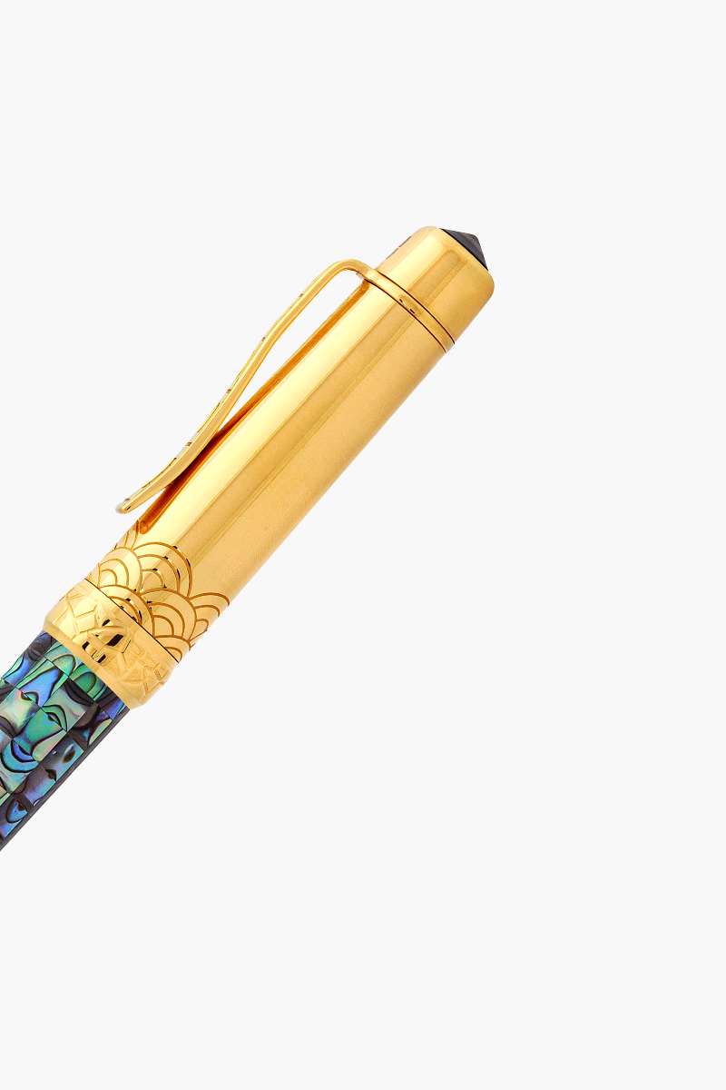 Chế tác từ vỏ ngọc trai và vàng quý giá, mỗi chi tiết trên chiếc bút “viết lên trời xanh” đều là minh chứng cho sự sang trọng và tinh tế được tạo nên từ bàn tay những nghệ nhân bậc thầy.